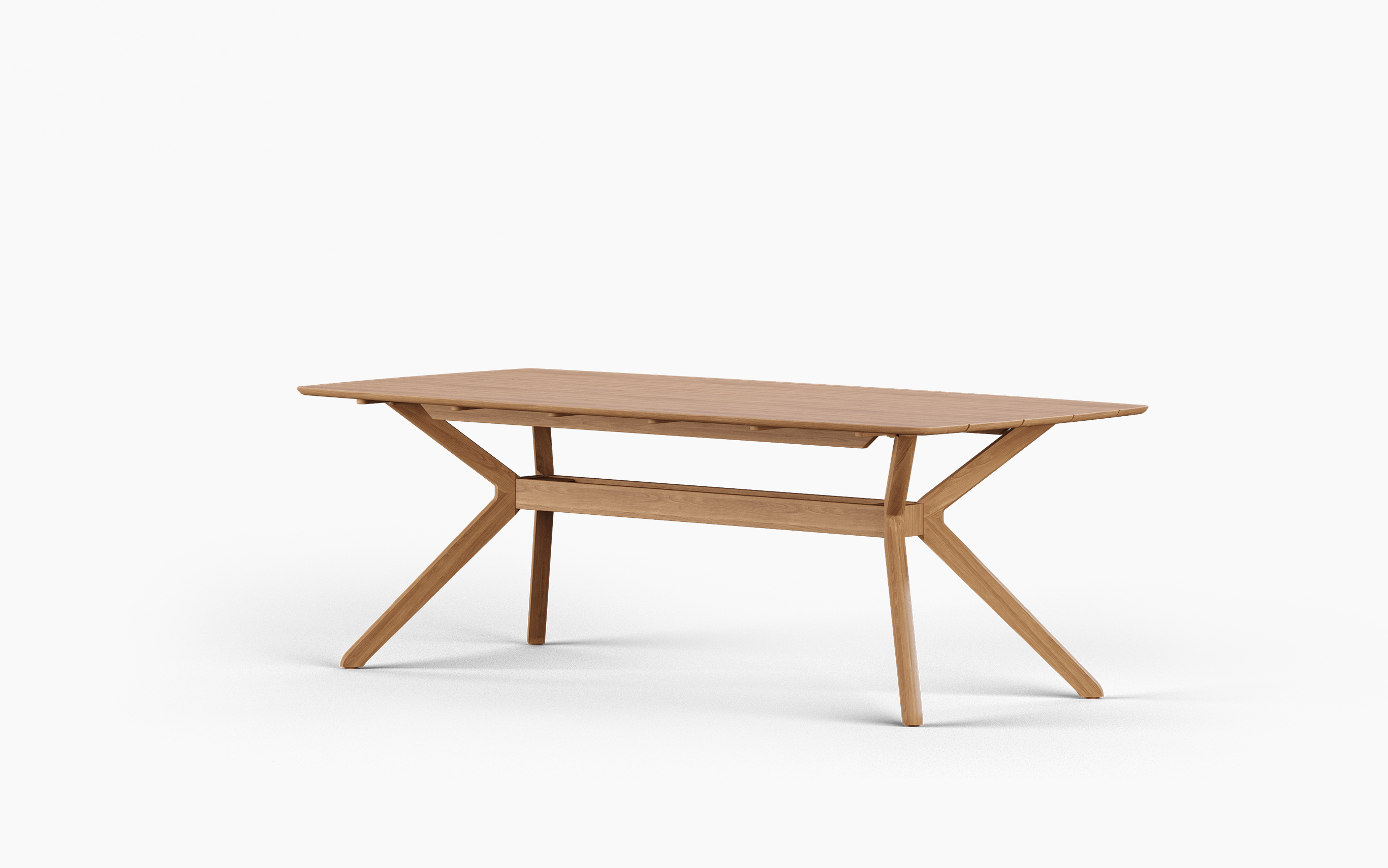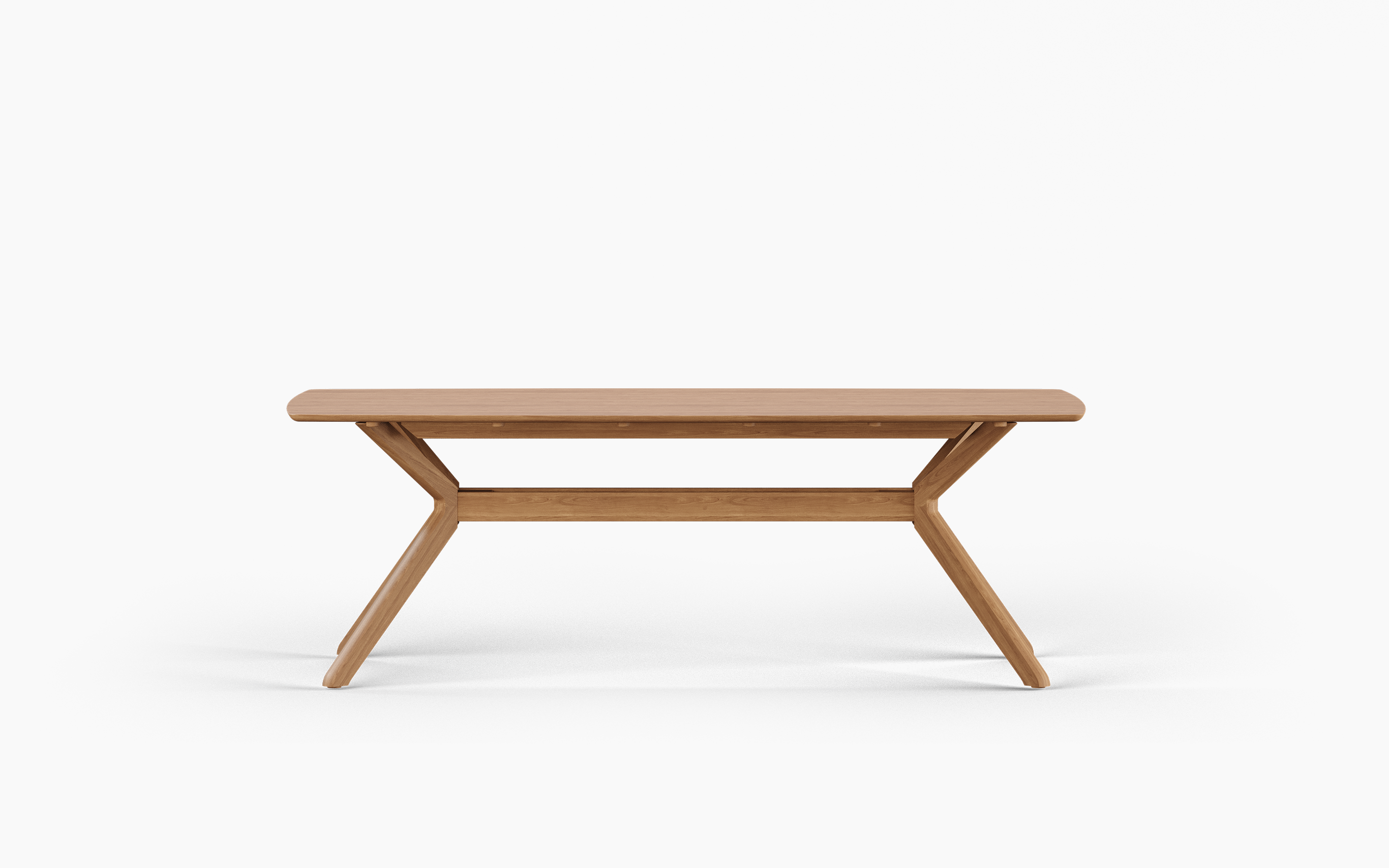 Made from A-grade teak, it’s designed to weather beautifully, softening to a silvery-grey hue over time while maintaining its strength and integrity. The BRAID’s distinctive angled legs and smooth joinery lend a lightness to the design, creating a table that feels both sturdy and refined — perfect for long lunches, evening drinks, and everyday moments outdoors.