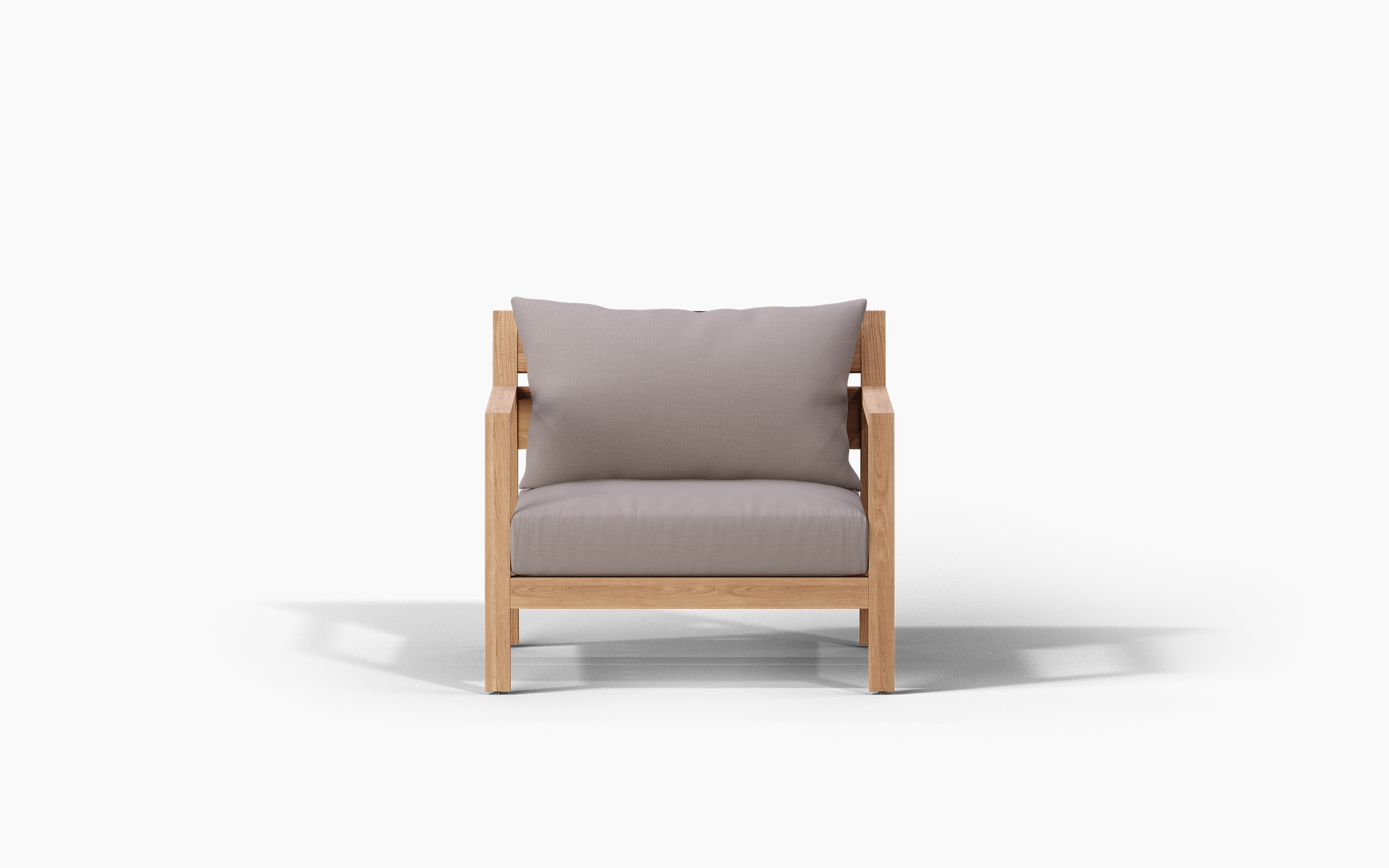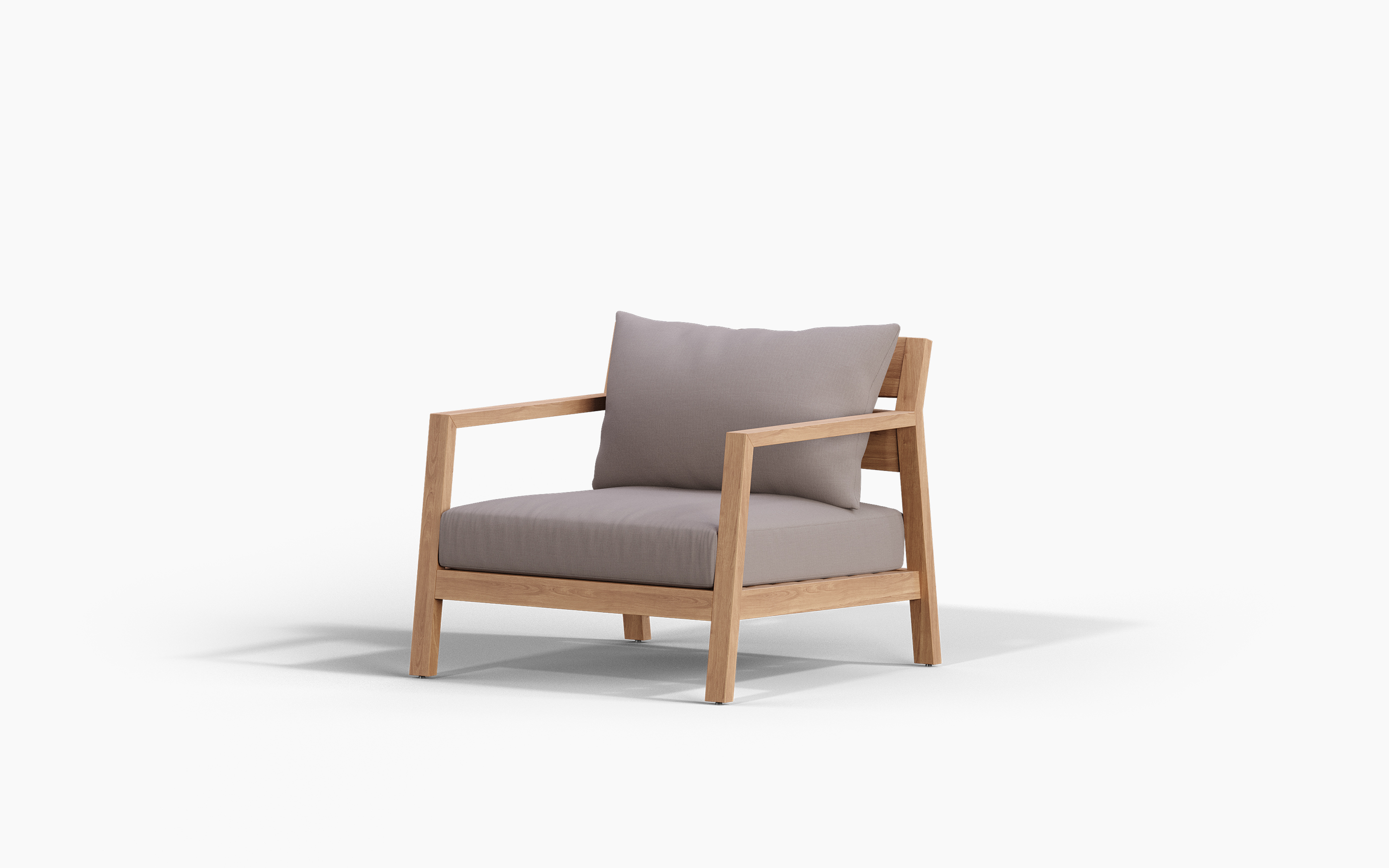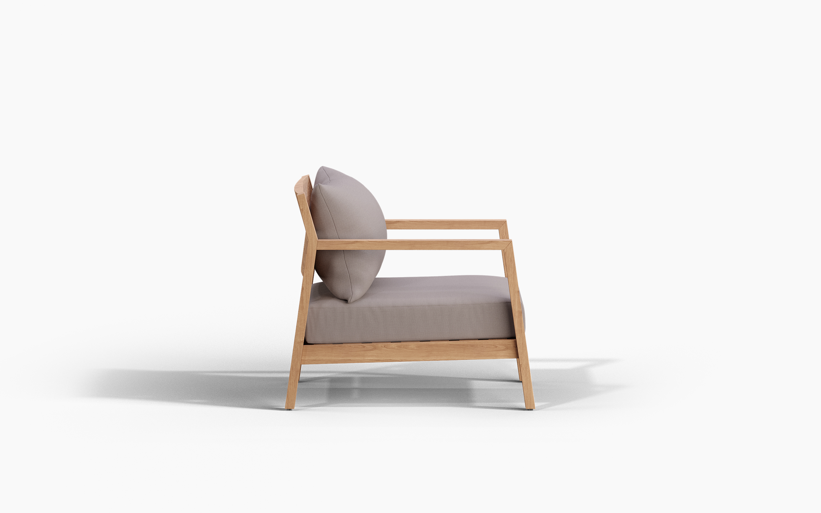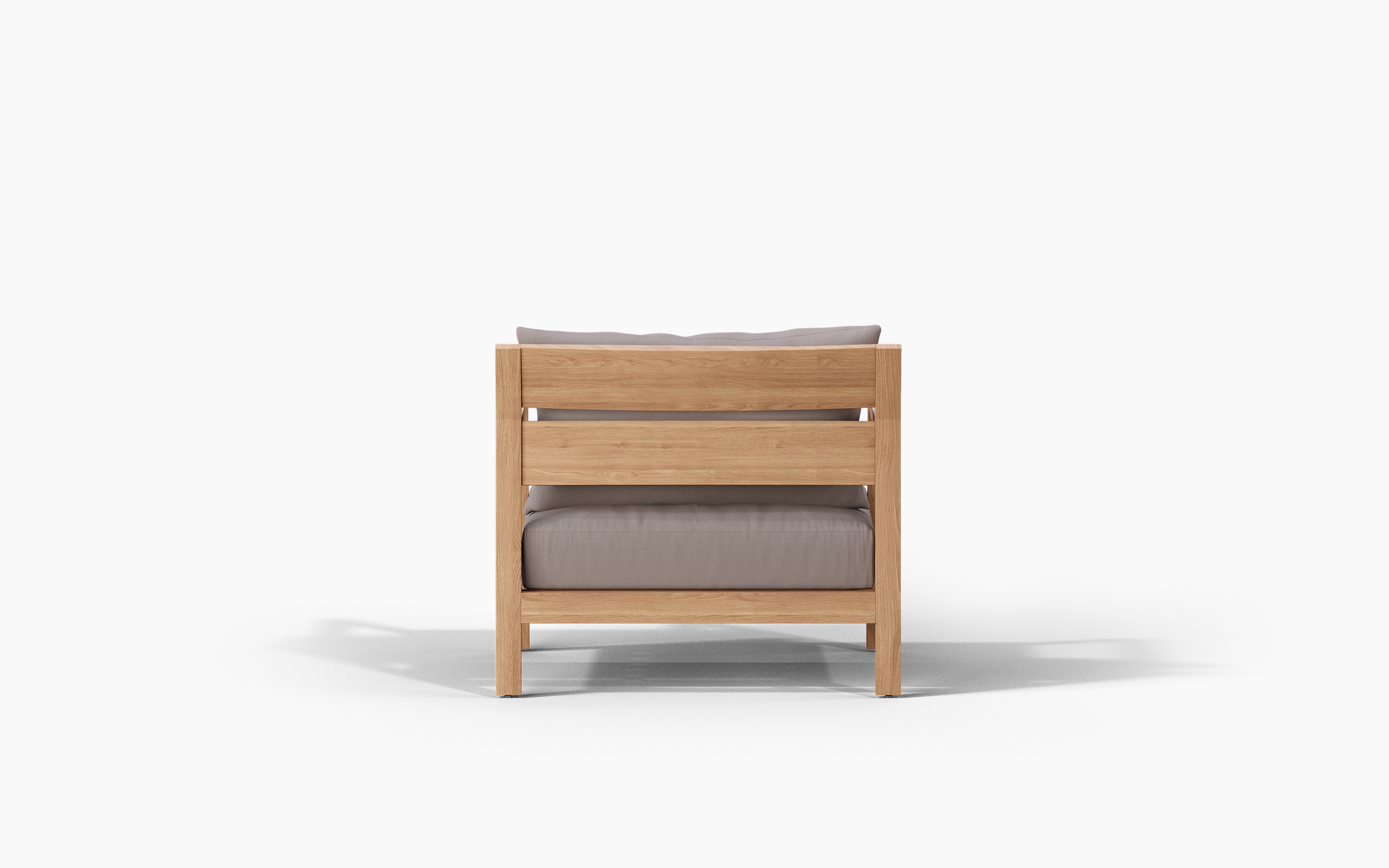 The Kisbee’s low profile teak frame features a sleek slated back, ergonomically designed for both enhanced comfort and aesthetics. Meanwhile, the outdoor cushions are crafted from weather-resistant, durable acrylic fibres to withstand New Zealand’s ever-changing environment.