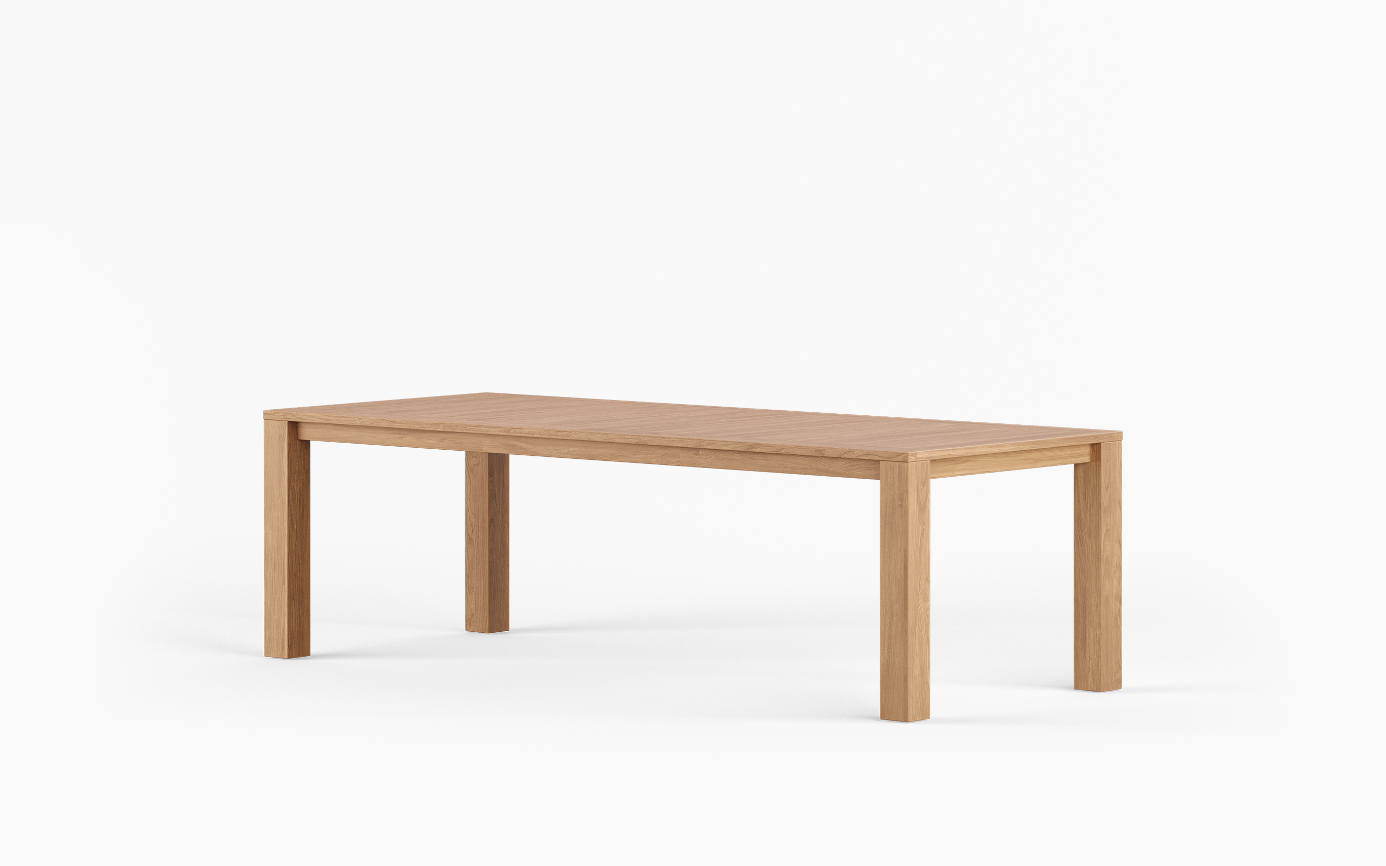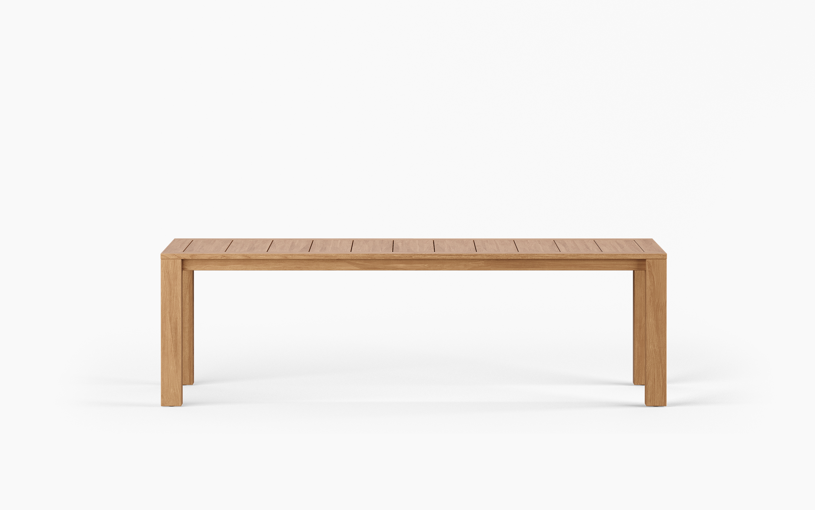 Beautifully simple and built to last, this solid outdoor teak dining table captures the ease and honesty of timeless design. With its broad teak planks and clean lines, the RAKAU marries minimalist design with generous proportions.