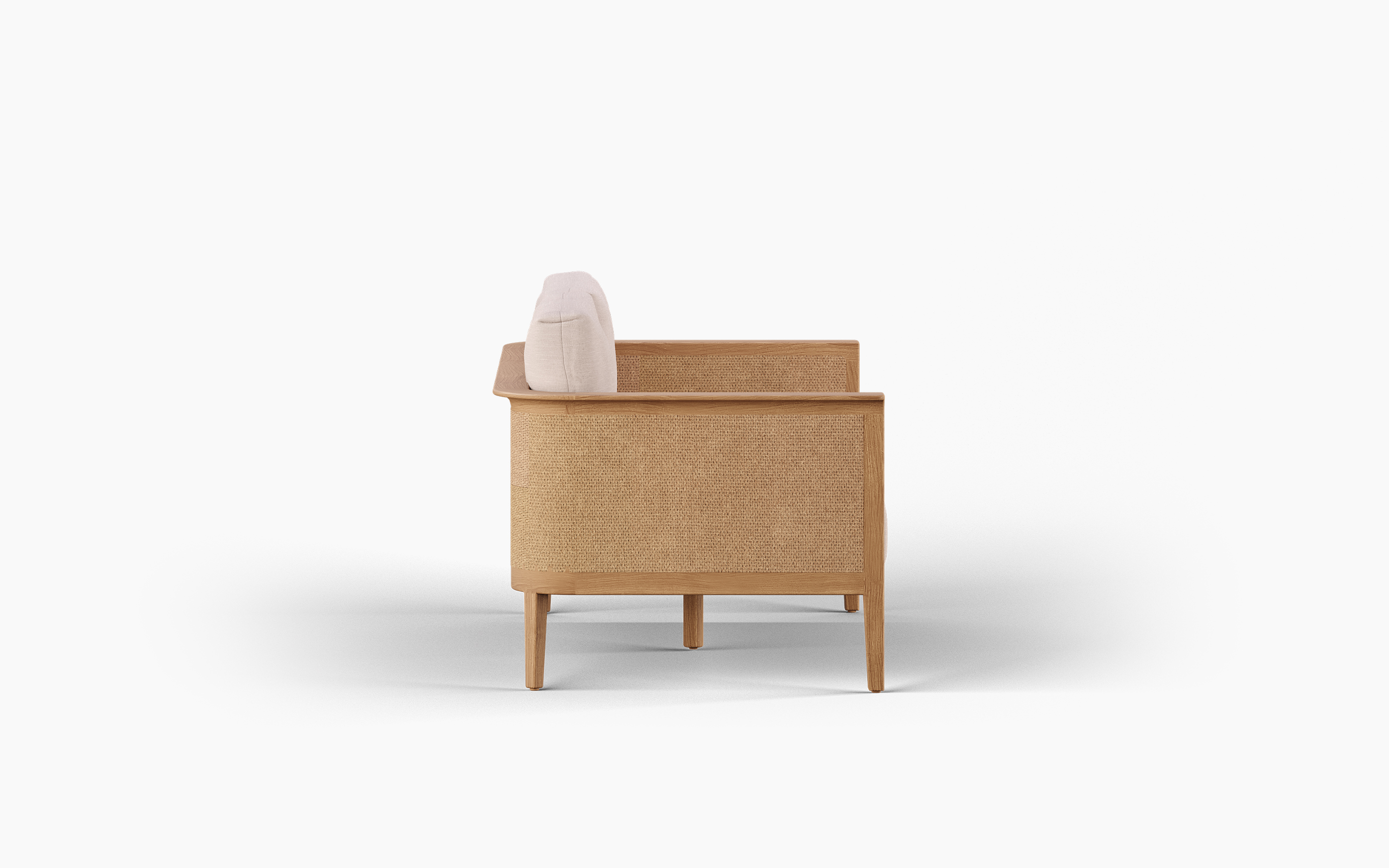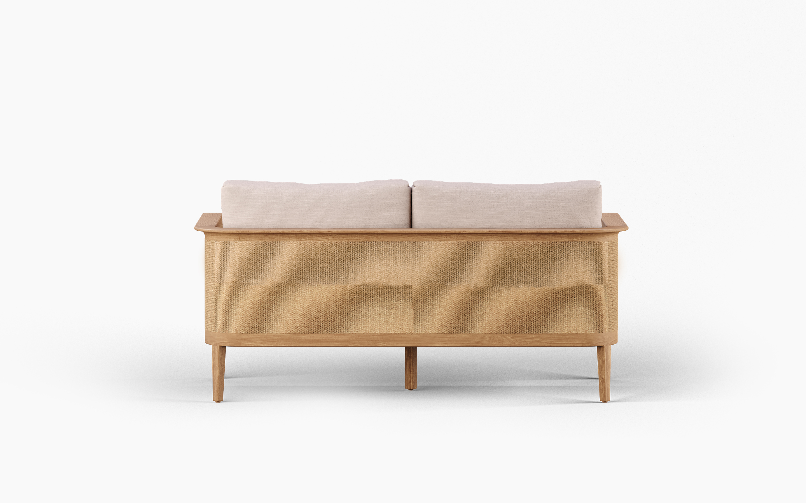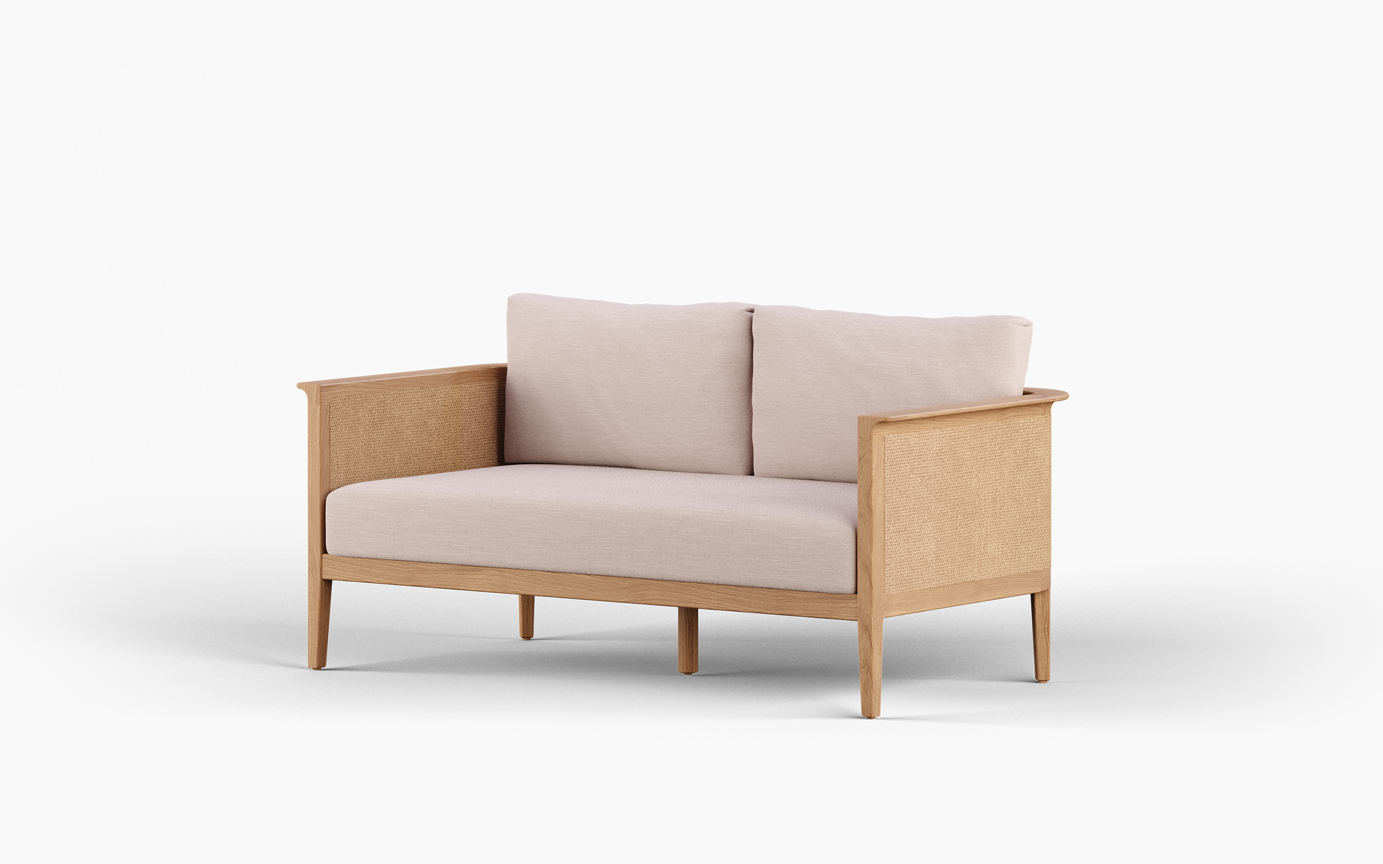 Relaxed, refined, and made for long afternoons outdoors, the RINGO two-seater sofa brings an easy coastal sensibility to any setting. A solid teak frame anchors the design with clean lines, while the woven rattan-style side panels introduce texture and warmth— subtle detailing that elevates without overpowering.